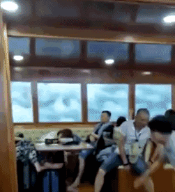 事发前船只猛烈颠簸,窗外狂风巨浪: