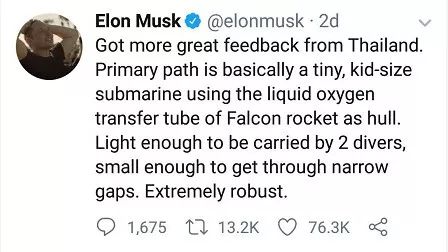 这件事引起了社会各界人士的广泛关注,7月7日,特斯拉汽车CEO马斯克(Elon Musk)遣工程师到泰国对于救援工作提供帮助。