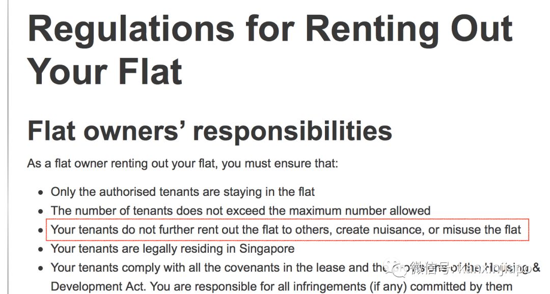 新加坡建屋局规定,组屋租客不可以私下转租房间给其他人,不可以对邻里造成困扰,不可以蓄意损害组屋。