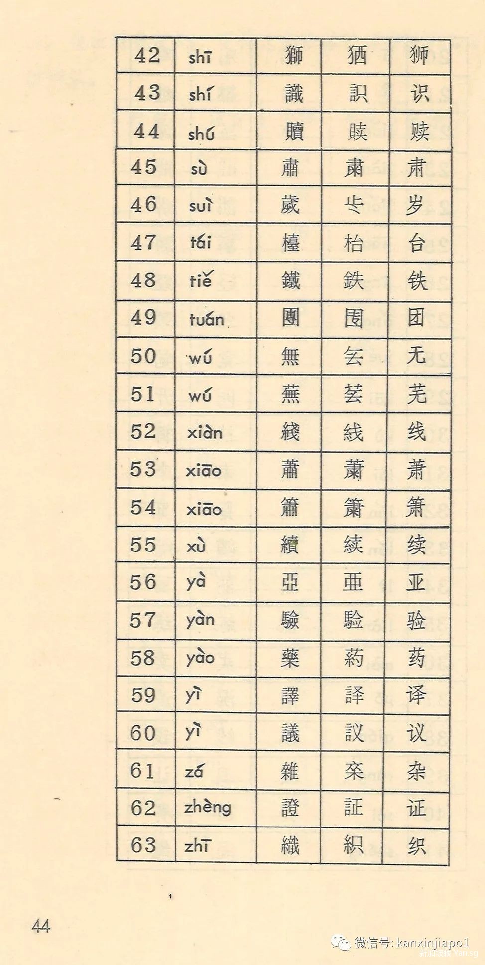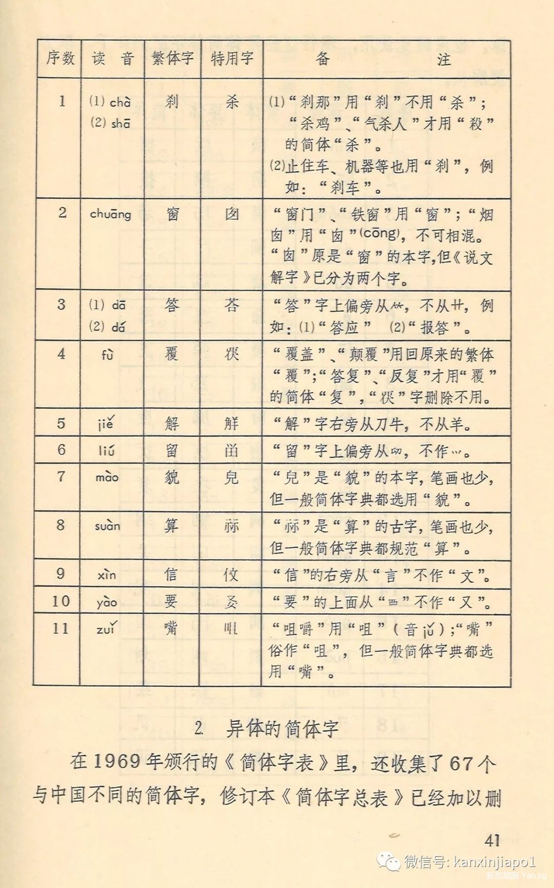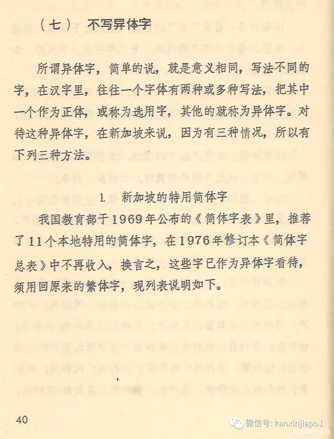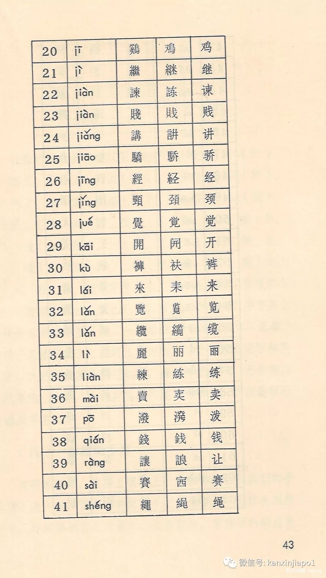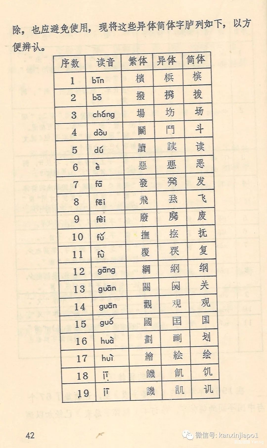 我在1968年进入崇福女学校(编者注:后来也招收男生,但校名未改)念小学一年级至六年级毕业时,所学的中文字都是繁体字,一直到中学一年级才开始接触简体字。记忆中,新加坡教育部曾经在1969年推出两百多个简体字,今天重温谢世涯老师所写的《简体字应用文论集》(1977年出版)一书,才知道那时新加坡人“发明”的简体字只有78个,它们是: