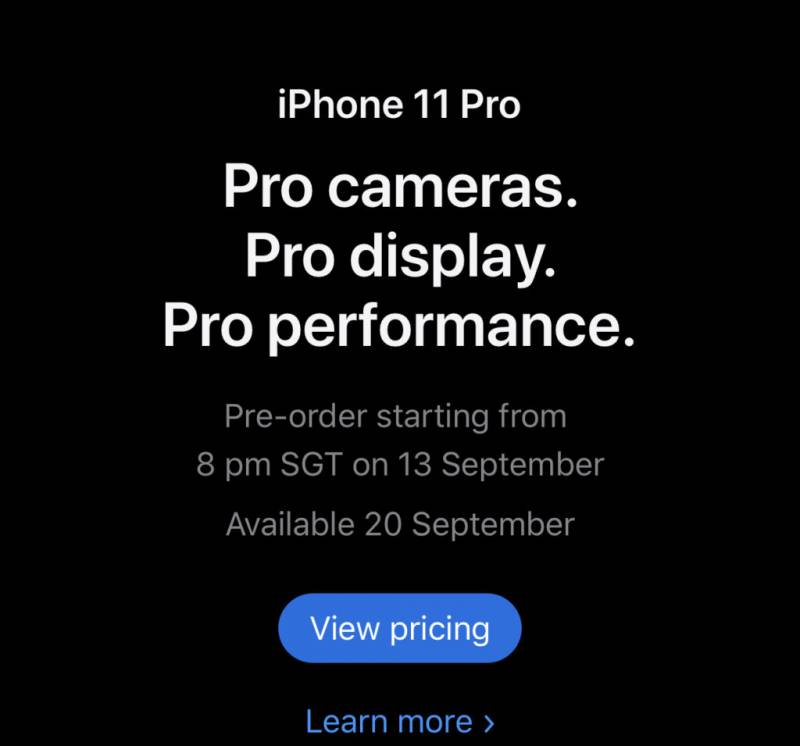 2019苹果新品发布,新加坡iPhone 1149新起,9月13日起开放预购