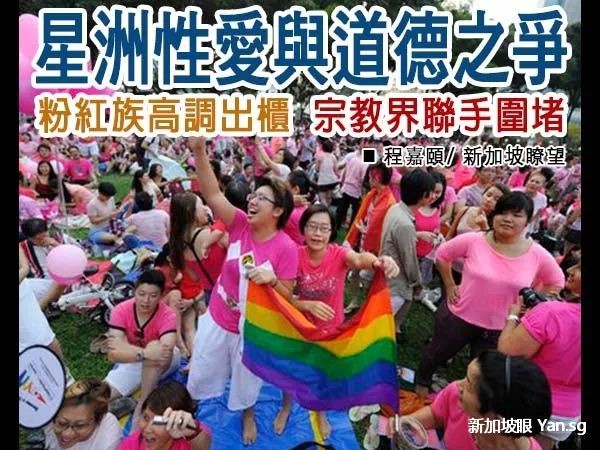 但是,在较为保守的新加坡,男性之间的性行为被视为刑事犯罪,恐面临最长两年监禁。为了能让社会对男女同志、双性恋、跨性别等群体更加包容,从2009年开始,有一群社会人士为LGBT群体发声,并举办大型活动Pink Dot。