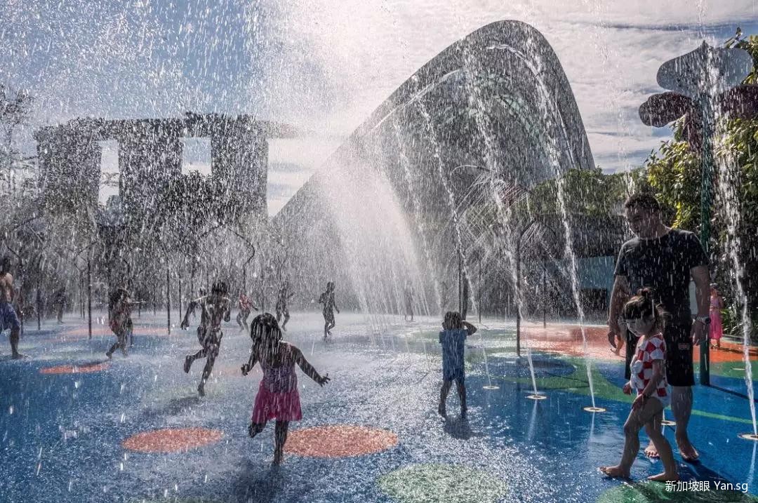 摄影理念:水花飞溅掉夏天的炎热。 新加坡是一个不断进步,年轻,现代化的国家,这里为每个人提供了有趣和奇妙的时刻。