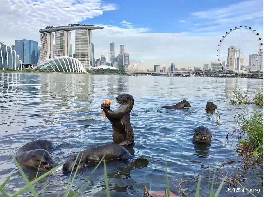 摄影理念:碧山水獭家族把滨海湾变成了豪华私宅。即使在繁华大都市中,本地人和游客也能和野生小动物们交流。