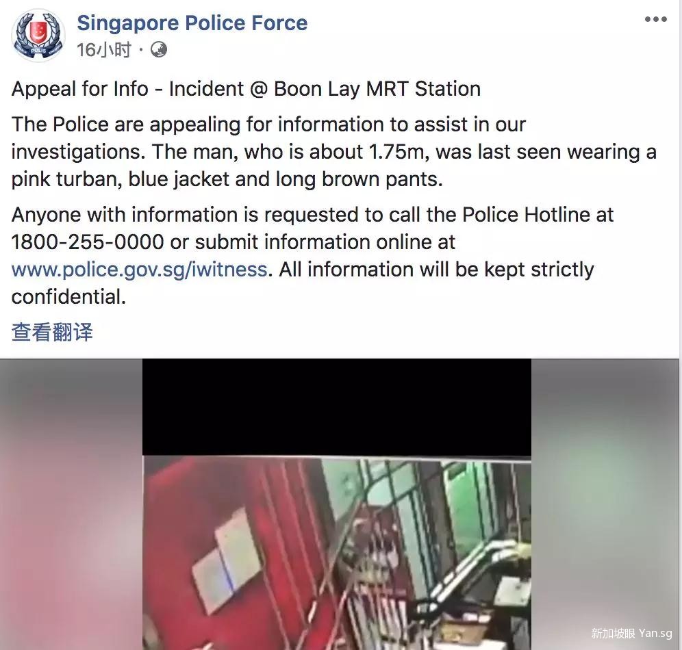截至目前,新加坡警察部队已连发4篇脸书,公布在逃嫌犯的面部特征,全城通缉这个人: