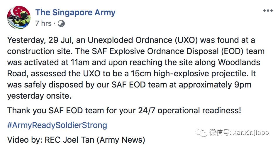 新加坡武装部队也在Facebook上向大家汇报了进展: