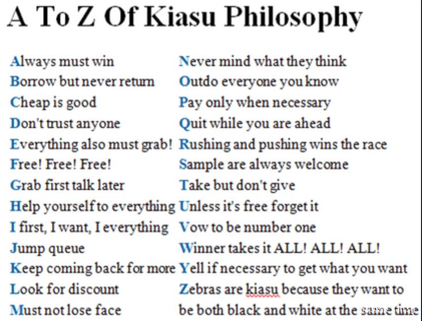 为了全面解释“怕输”,新加坡人还自创了一套A-Z的“怕输哲学宝典”。