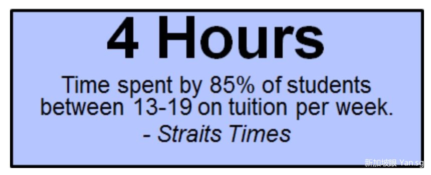 新加坡介于13-19岁的孩子中,85%小孩每周要课外补习4小时以上。