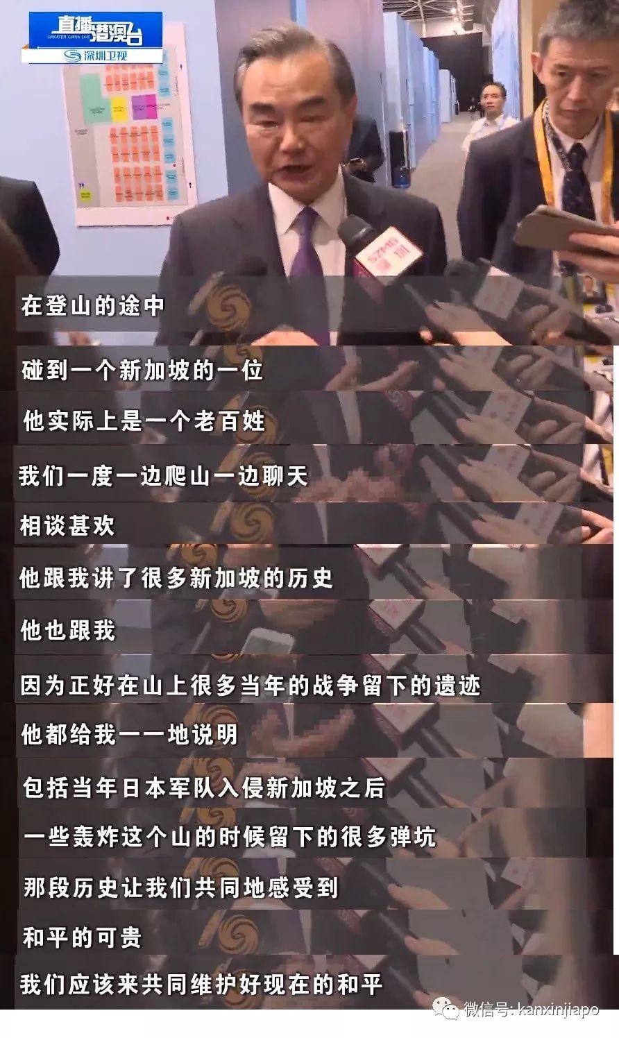 通过这次“偶遇”,王毅部长感受到新加坡uncle“质朴的气质”。他一直记挂着没有与安哥(uncle)好好道别,希望记者能帮他传达“嘿,老兄,祝你身体健康,生活愉快,天天爬山,天天高兴。”
