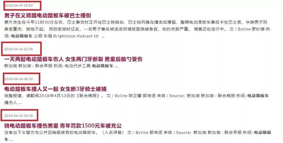 2018年4月,几乎天天都有电动滑板车造成的事故……