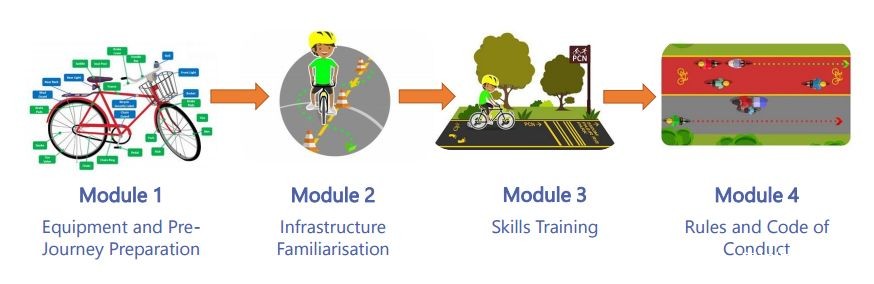 教育骑手和个人移动设备(PMD)用户安全骑行的技巧和做法教育骑手最新的规则及准则,以及Active Mobility Act推荐的个人移动设备使用法为个人移动设备用户和骑士营造一个安全良好的骑行环境课程共有四个单元: