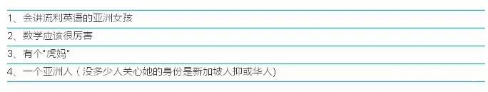 就如同,亚裔在很多人心中都会与“聪明”“有钱”挂钩,似乎在他们心中亚裔天生就该数学好、个子矮、处世圆滑。