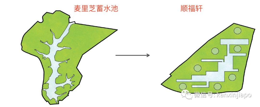 而且,就连顺福轩的整体规划,Paul Tange也按照麦里芝蓄水池的地形,进行了几乎1:1的还原。泳池对应河道,贯穿整个小区。
