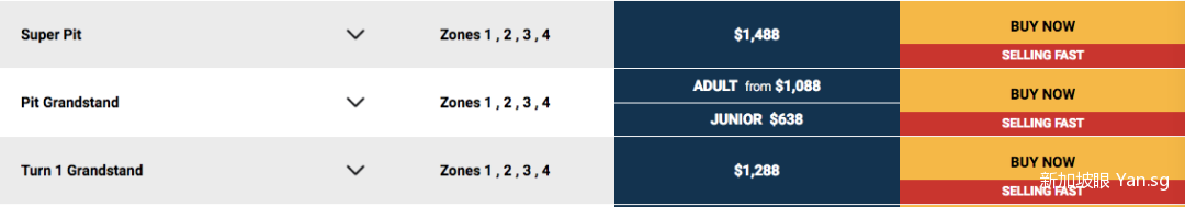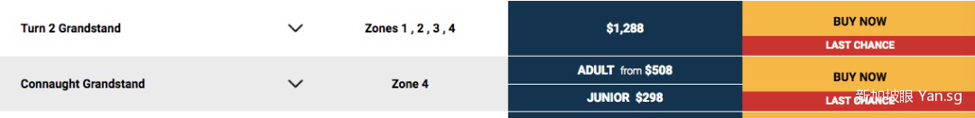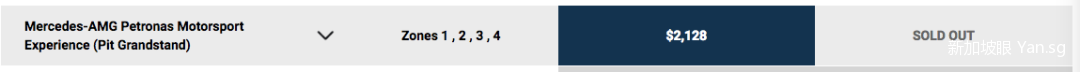 已售罄的是梅赛德斯AMG马石油车队体验看台,票价 $ 2128