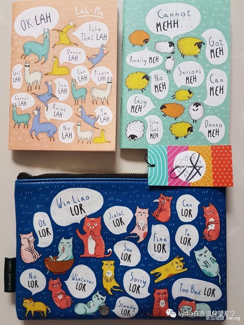 Citylink Mall里面有一个专门给本地设计师提供展示和售卖设计产品的商店City of Tomorrow,我个人喜欢印有Singlish的小本子和小包包,觉得很有趣。如果你懂Singlish的话,就会明白那些词是啥意思啦