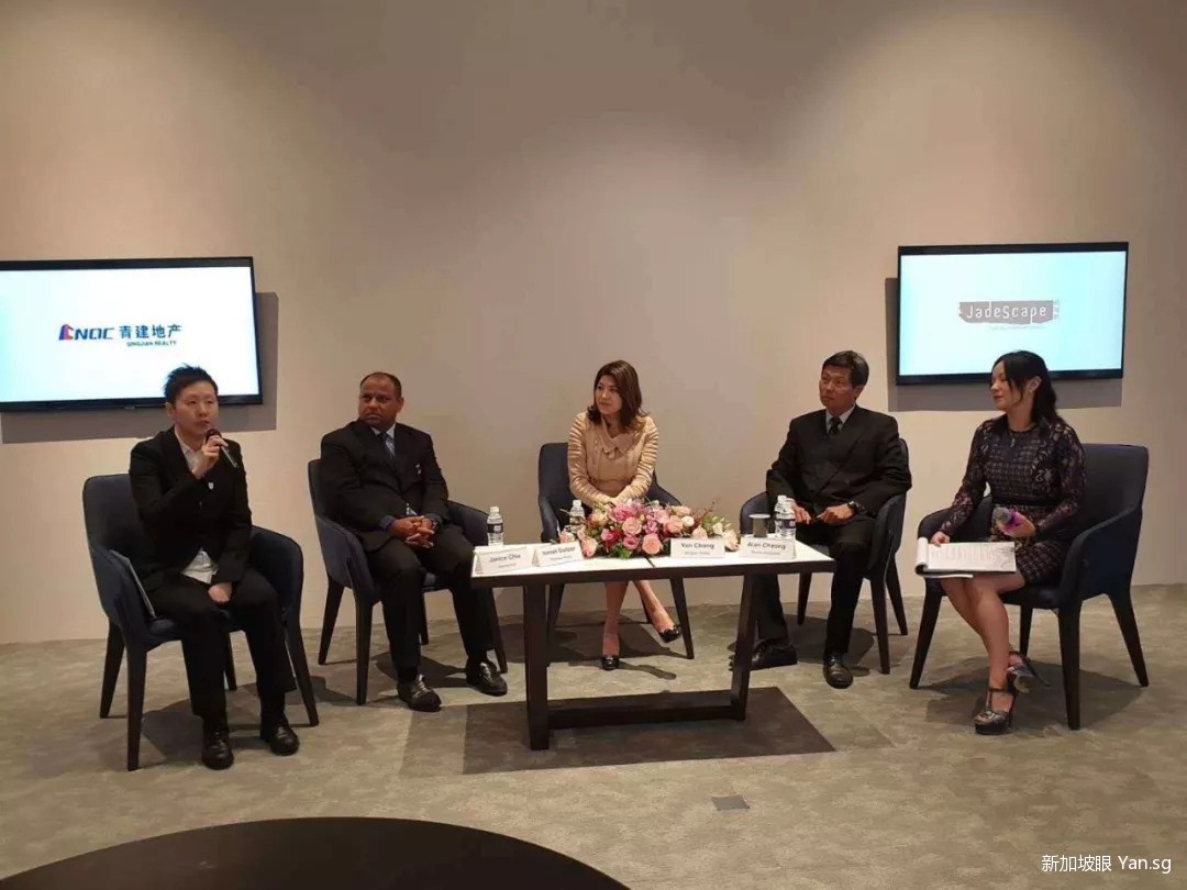 ▲(左起:亚洲养老产业执行董事谢慧贞女士、新加坡最大的房地产经纪公司博纳CEO伊斯迈先生、青建地产副总经理张郦缘女士、第一太平戴维斯研究与咨询部高级主管张敏璋先生)