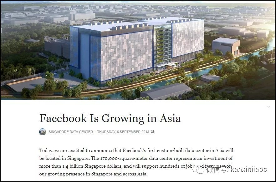 最新消息,社交媒体Facebook将投资14亿新元(10亿美金),在新加坡建造亚洲首个数据中心!