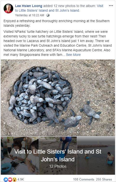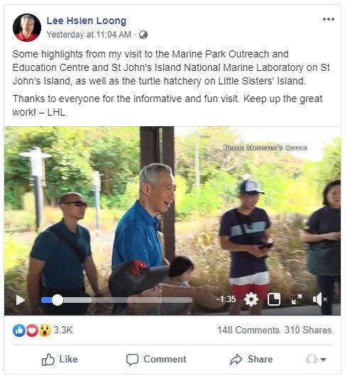 李显龙总理在Facebook写道