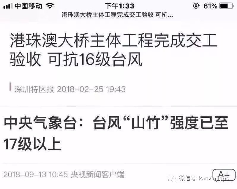 划重点,“山竹”已升至17级了,抗16级的“港珠澳大桥”你可得稳住,挺过去了,你就是世界奇迹!