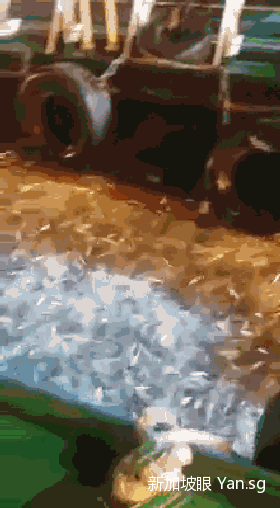 台风来临前,有网友见识到了“鱼跃龙门”,不过还是没改吃货属性,拿起网子就捞。