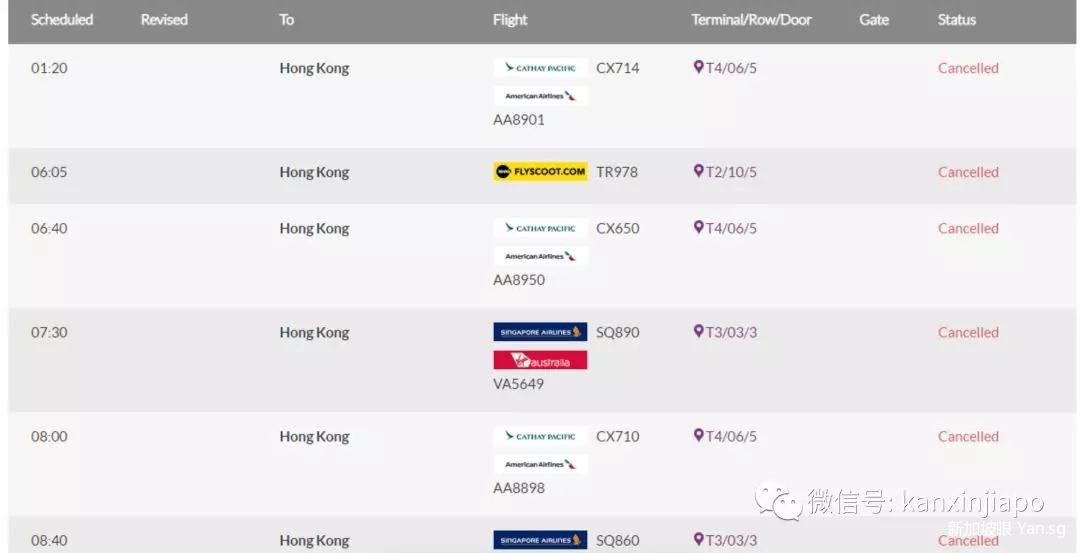 香港(2018年9月16日) TR978,原计划在上午06:05点离开新加坡为香港。 TR979,原定于上午10:55点在新加坡离开香港 TR980,原本计划在晚上02:10点离开新加坡为香港。 TR981,原定于下午06:55点在新加坡离开香港 TR974,原本计划在晚上04:55点离开新加坡为香港。 TR975,原定于下午09:50点在新加坡离开香港