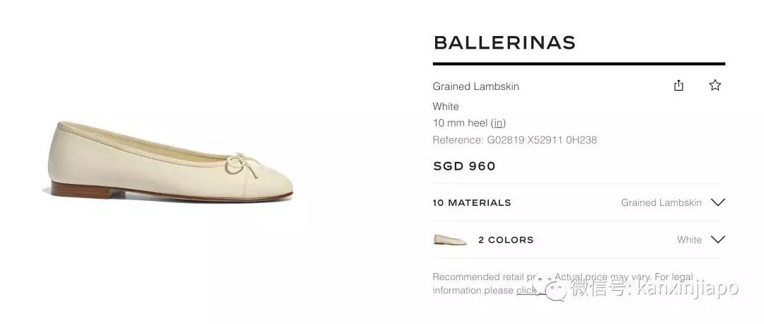 经典款菱格软羊皮芭蕾舞鞋…….价格1000新币左右。