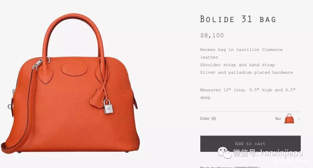 疑似鳄鱼皮的爱马仕kelly包赫然在列,官网上显示这可以要6万新币左右。