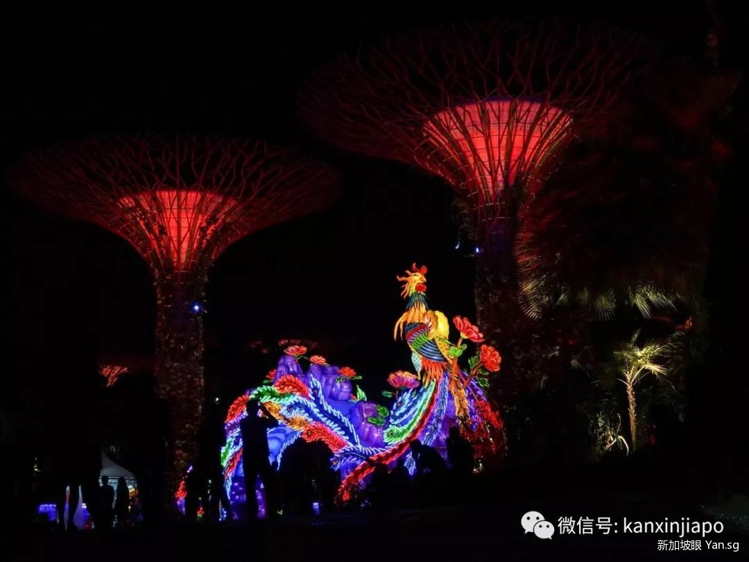 进入展区内,能看到今年滨海湾中秋灯会的一个有名的项目“凤凰戏牡丹”!