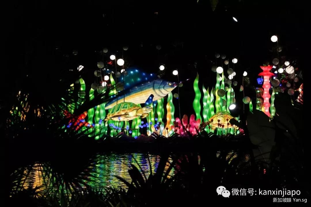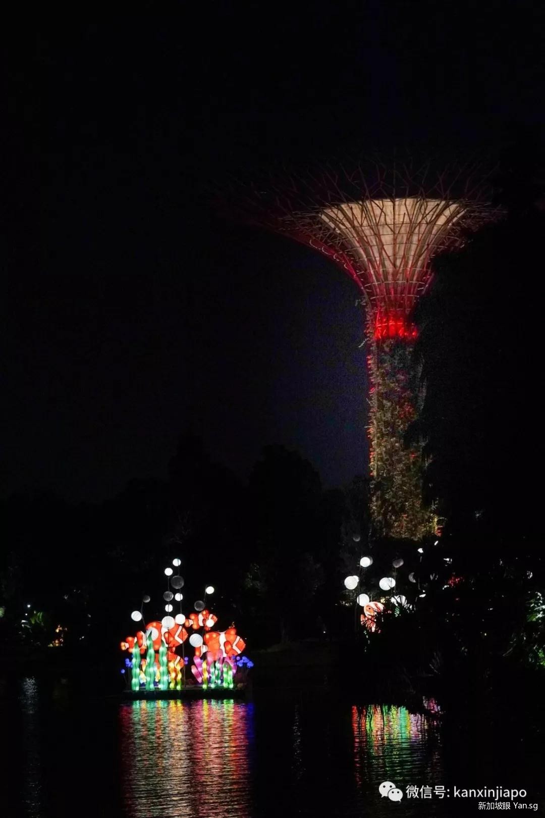 各种海鱼也从海里“跃出”,出现在了灯会上~小丑鱼在超级树间“游来游去”……