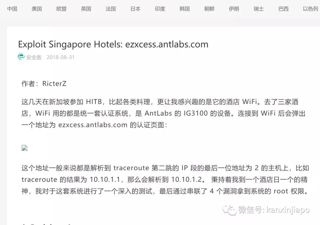 一腾讯员工在新加坡酒店入住期间,因为好奇(或是一个程序猿的自尊+职业病),检查了一下酒店WiFi漏洞,结果居然被新加坡警方抓了!