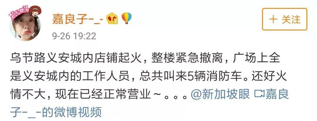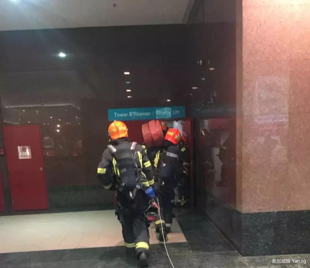 随后,新加坡民防部队在Facebook上通报了这一事件。今日傍晚5点08分,民防部接到消息,乌节路义安城B楼发生火灾。
