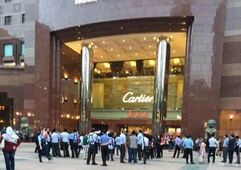 图片放大,我们可以看到新加坡著名的奢侈品商场义安城外全都是人: