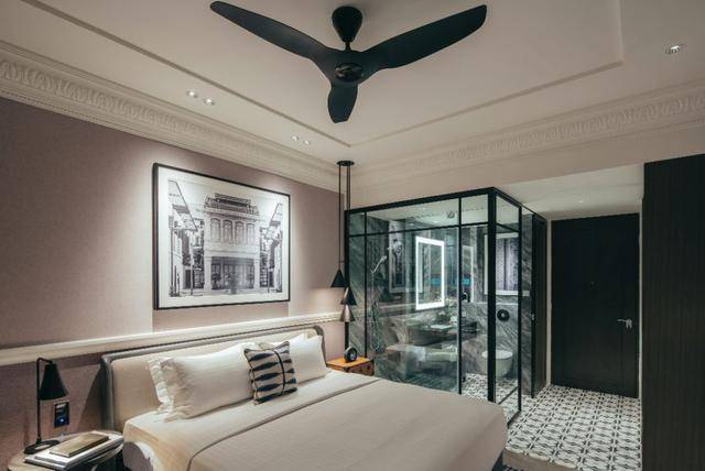 房间头顶的复古风扇,还原新加坡当地人的家装喜好。即使现在普遍装上了空调,新加坡店屋里的风扇依然发挥着最初的作用,吱悠悠地转着,吹走热带夏天的暑气。