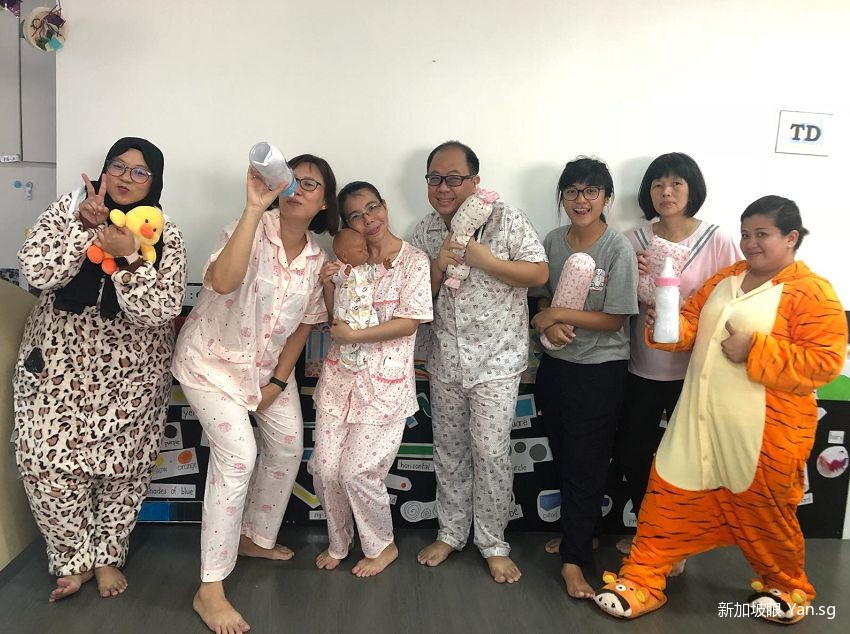 有的老师还穿上了萌萌哒连体睡衣~ 大家拿着奶瓶、抱枕,也是很可爱了~