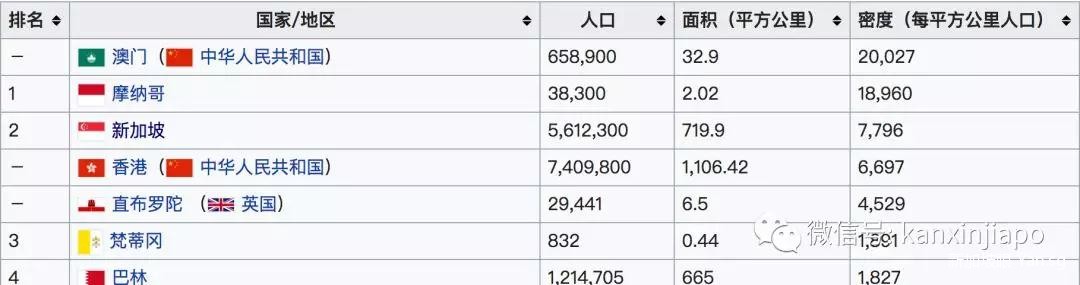 新加坡人口密度排名,仅次于国土面积第二小的国家摩纳哥。