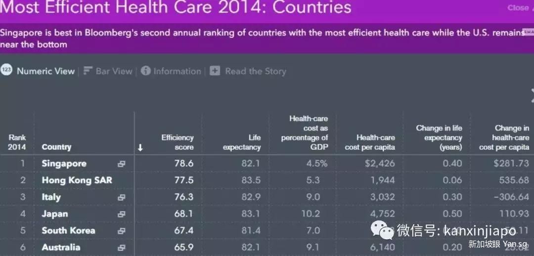 在彭博社发布的世界各国医疗效率排名表中,新加坡的医疗效率更是排到了全球第一!