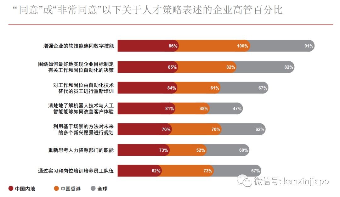 调研发现,为了解决技能缺口问题,84%的中国企业正致力于为受自动化冲击的劳动力提供再培训和技能发展。在吸引数字技能人才方面,提高企业薪酬和福利(57%)和现代化办公环境(36%)被视为最重要的两个策略。