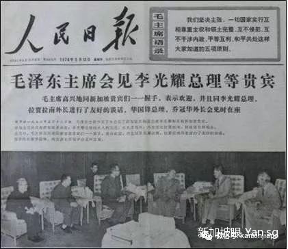 1976年5月10日,李光耀应华国锋之邀,首次访华。5月12日下午,已病重不常见客的毛泽东支撑着身体,会见了李光耀。第二天《人民日报》头版头条的标题是“毛泽东主席会见李光耀总理等贵宾”。对李光耀的定调已悄然改为“贵宾”。