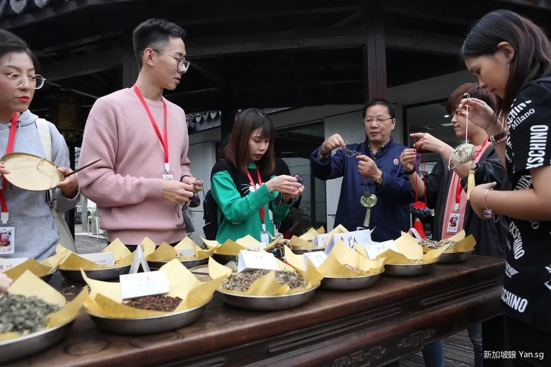 经过短暂休息,精彩的下午行程开始了——营员们来到了“雷允上中医馆”,体验了一回制作香囊,