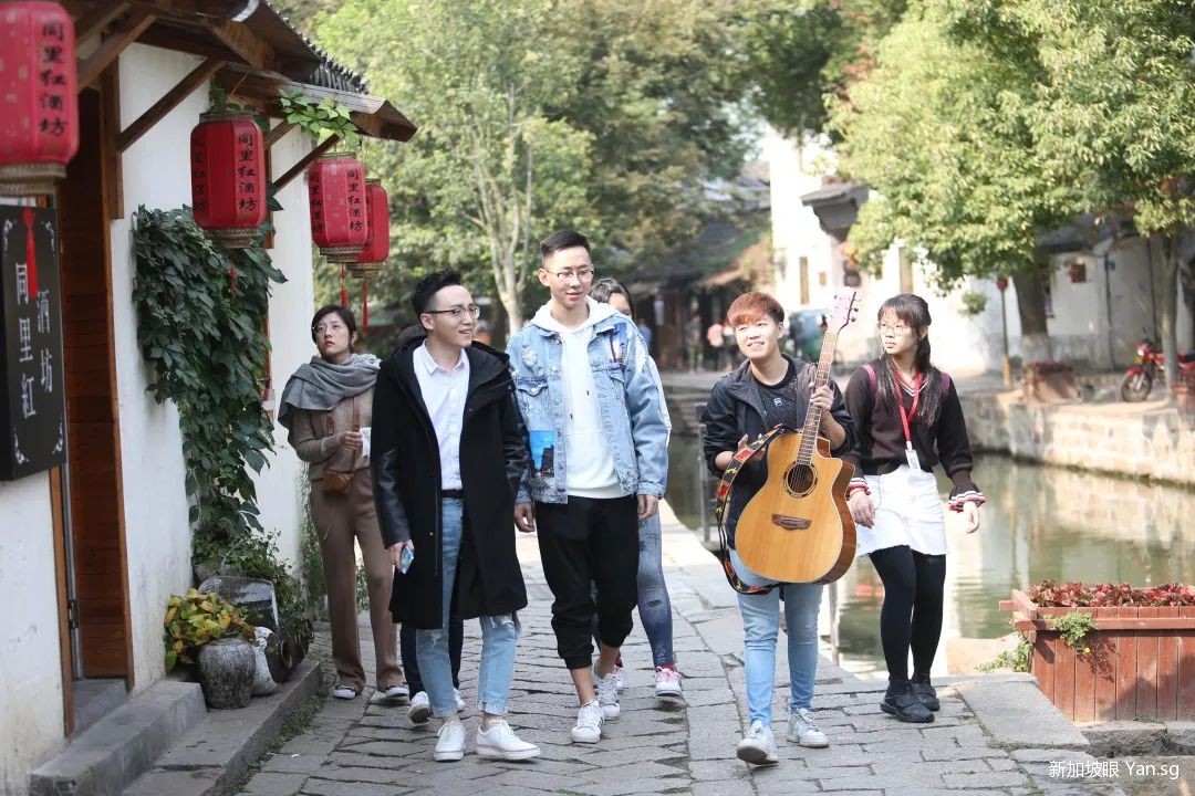 七位创意营的小伙伴们来到这里游船划水创作,才思泉涌,尤其是来自新加坡的小伙伴廖童鞋才17岁,就深深被这古镇水乡吸引了