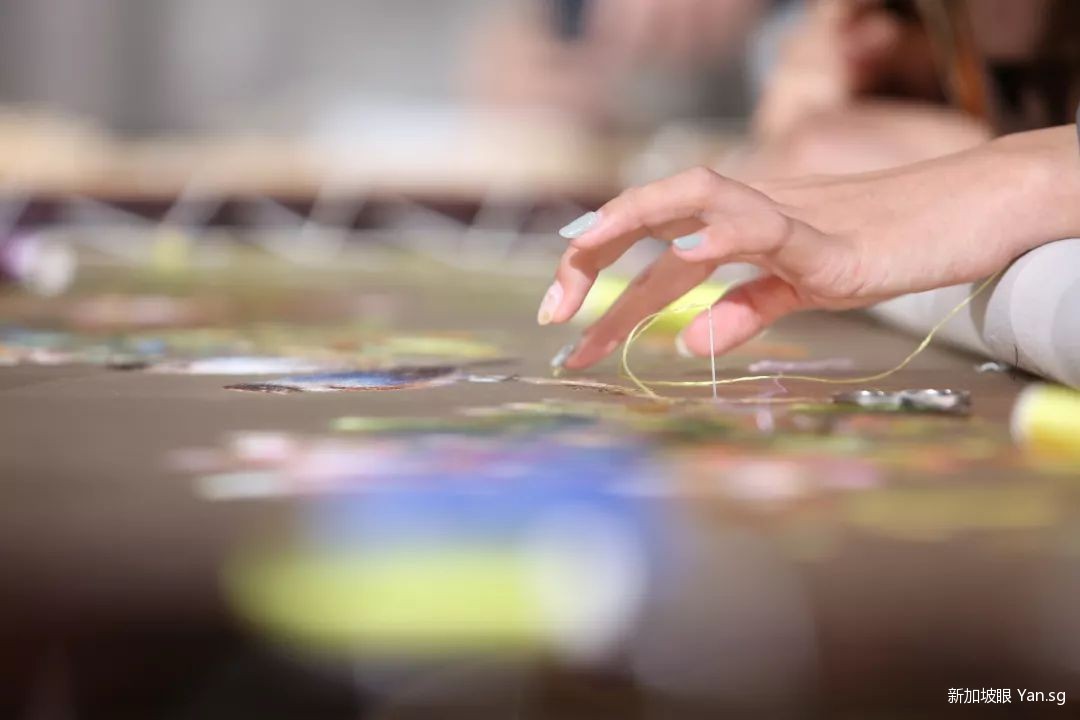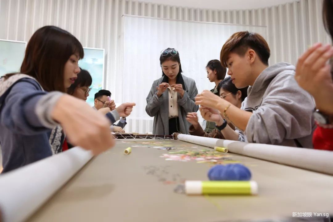 来苏州最不能少的一个文化体验就是苏绣,作为苏州颇具代表性的一趴,镜头里自然少不了苏绣《姚建萍刺绣艺术馆》,学员们体验了一把穿针引线。