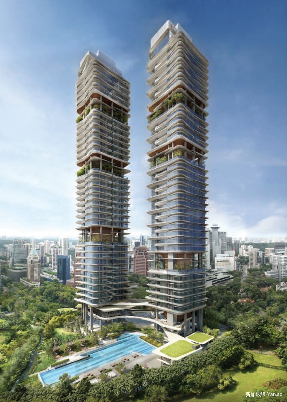 新加坡顶尖开发商城市发展(CDL)倾情奉献名家手笔,由屡获殊荣的建筑师事务所Skidmore, Owings & Merrill LLP(SOM)鼎力设计, 独一无二的建筑外观、完美流线型阳台,无疑将使这两栋双子建筑成为又一风格化的地标。前文已有提到,银峰对门就是“明星盘”Twin Peak。