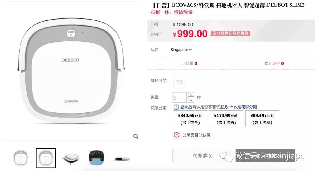天猫上的科沃斯扫地机器人才¥999!