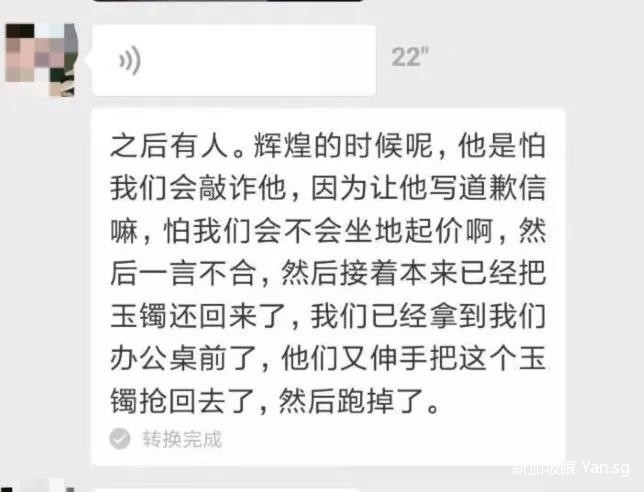 哪知新加坡夫妇听后炸了锅!他们还把事情拔到“国家荣誉”的高度,称旅行社和中国玉镯店在诬陷新加坡人!如果偷了东西,还能过中国海关?夫妇强烈要求赔偿国家荣誉损失费。