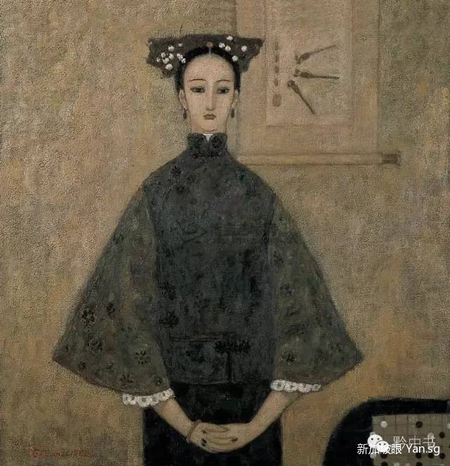 清装女子系列作品中,无论人物形体、色彩、背景无不单纯简约。“我喜欢中国传统的高领服装的样式,给我的感觉像含苞欲放的花,留有余地。我喜欢这种‘留’。书法和国画,还有围棋,处处都很讲究这种‘留’。留白、留气眼而出空灵。”