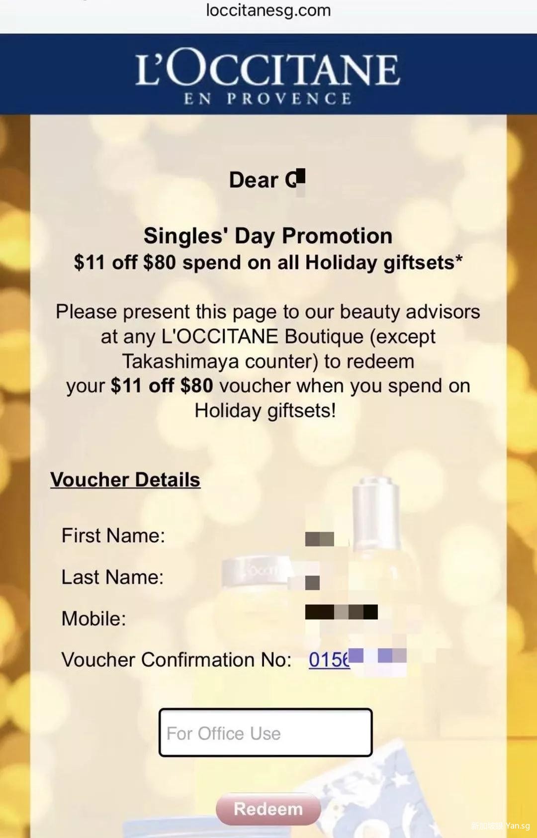 没法在网上搞双11活动怎么办?好捉急!于是,新加坡欧舒丹想了个新招,直接简单粗暴地给店员看优惠券,买够80新币就能减11块钱!