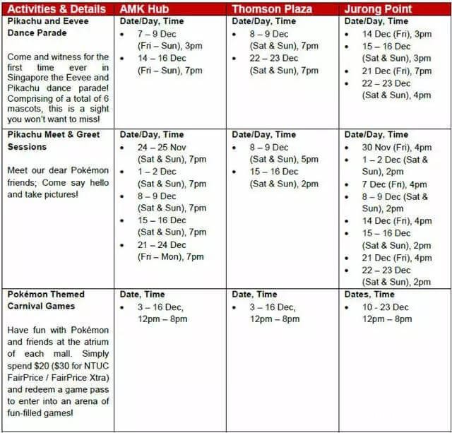 嘉年华期间,主办方策划了三个主要活动供大家选择:皮卡丘和伊布的舞会、皮卡丘见面会和主题游戏,活动细节和时间表如下: