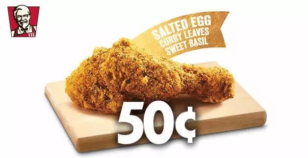 使用DBS/POSB卡支付,购买任何套餐,即可以$0.50享有肯德基最新推出的咸蛋咖喱炸鸡腿!
