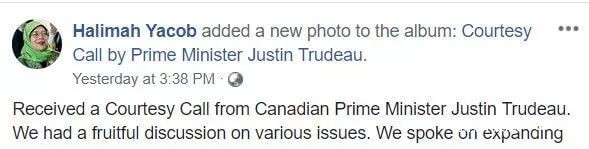 连哈莉玛总统昨天都激动地在脸书上分享了这一重磅消息: