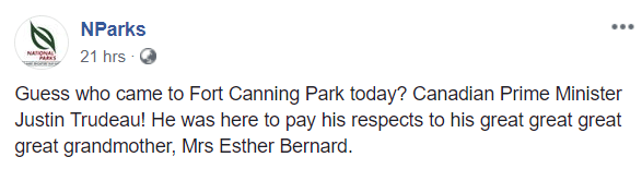 特鲁多总理的妈妈甚至来新加坡寻找家族历史。